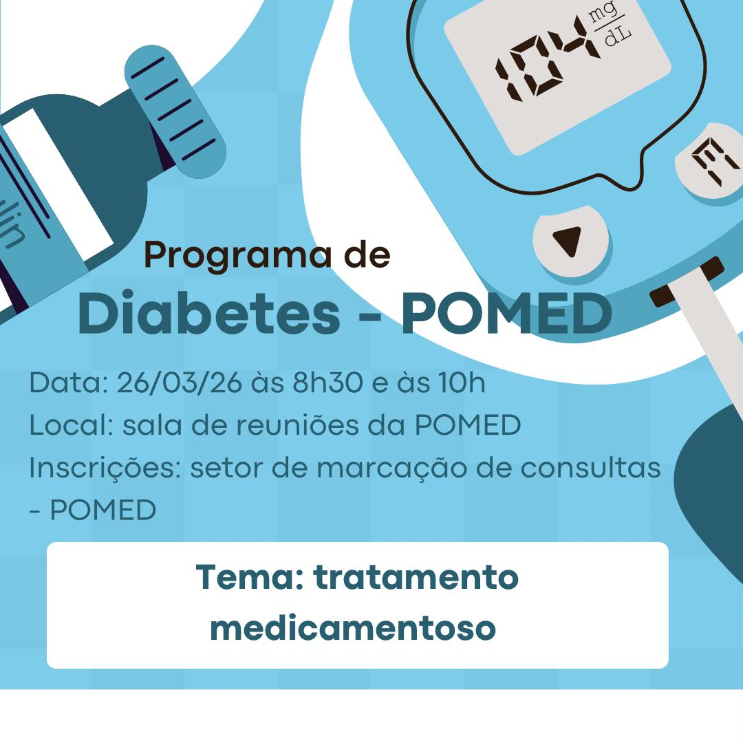Palestra do Programa de Diabetes abordará tratamento medicamentoso.